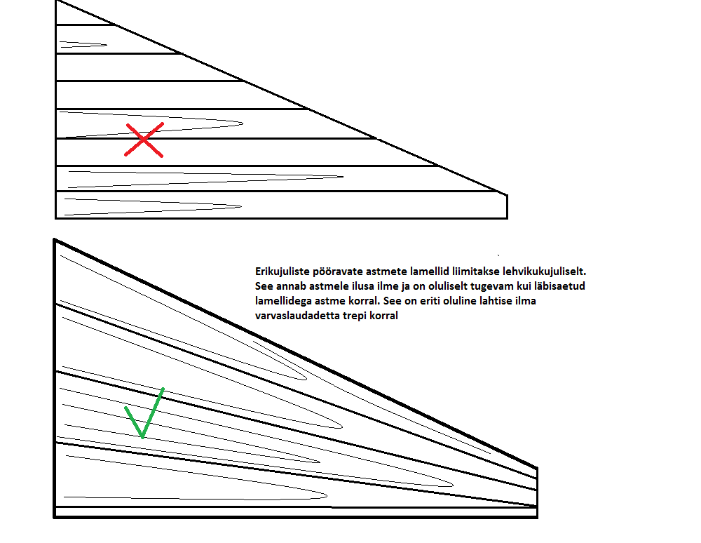Erikujuga trepiastmete hinnapäringuks on vaja teada: trepi laiust, trepi kuju näiteks L ,U või S kujuline ja puuliiki millest astmeid soovitakse.